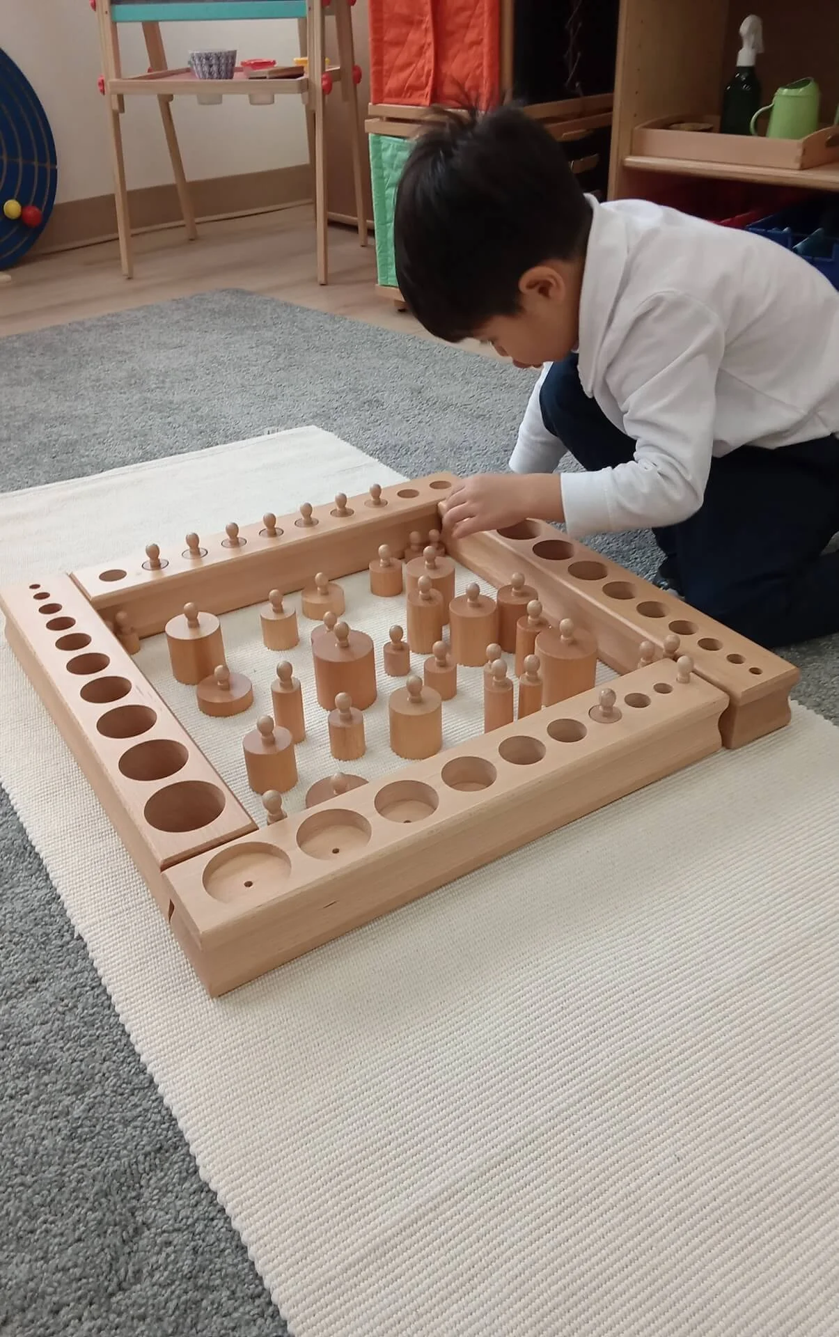 Through hands-on materials, children refine their senses, laying the foundation for math and language learning: